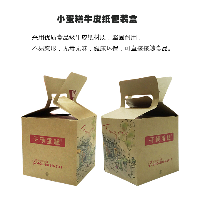小蛋糕牛皮紙包裝盒采用優(yōu)質食品級牛皮紙材質,堅固耐用,不易變形,無毒無味,健康環(huán)保,可直接接觸食品,方便將食物打包外帶,給我們的生活帶來了極大的便利。
